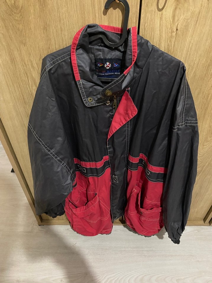 Düğmeli Siyah-Kırmızı Deri Yağmurluk