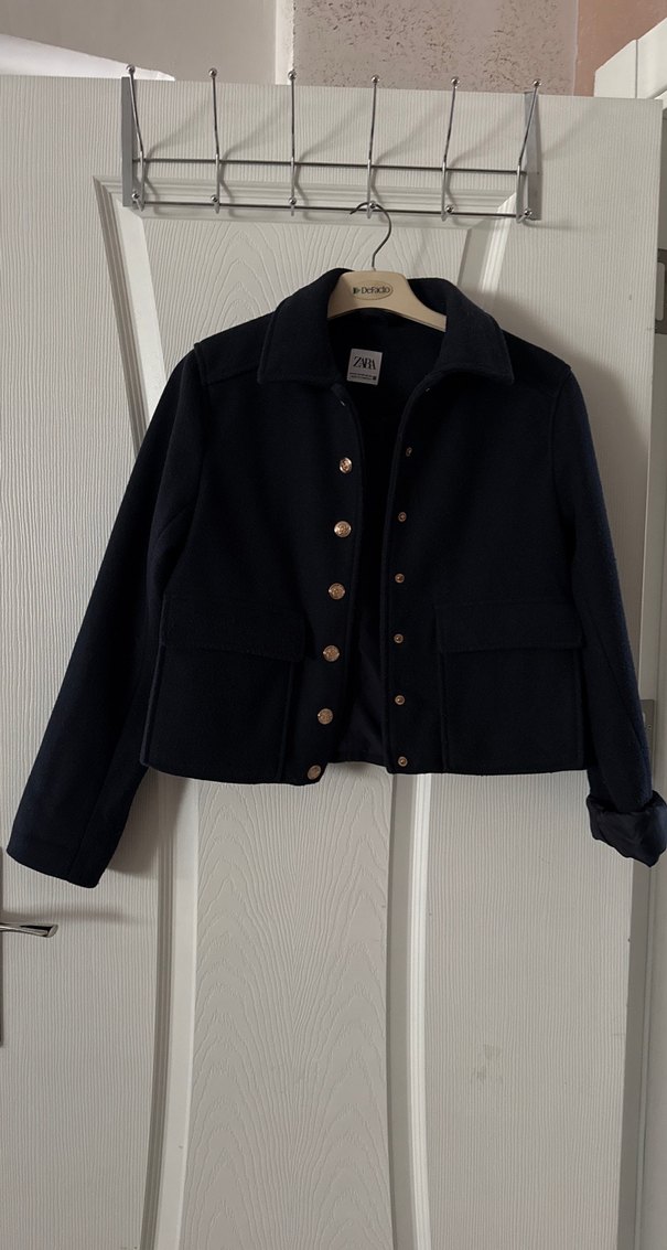 Düğmeli önü ve kesik yaka detaylı siyah denim ceket. Uzun kollu, regular fit ve kısa boyda, günlük kullanıma uygun şık bir parça.