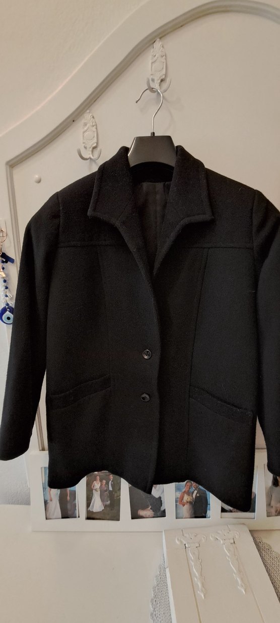 Siyah, düğmeli, normal uzunlukta kaban. Yumuşak ve sıcak kumaştan, uzun kollu ve regular fit,özel dikim. ofis kullanımı için uygun.