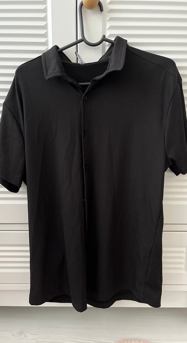Düğmeli Siyah Kısa Kollu Erkek Gömlek