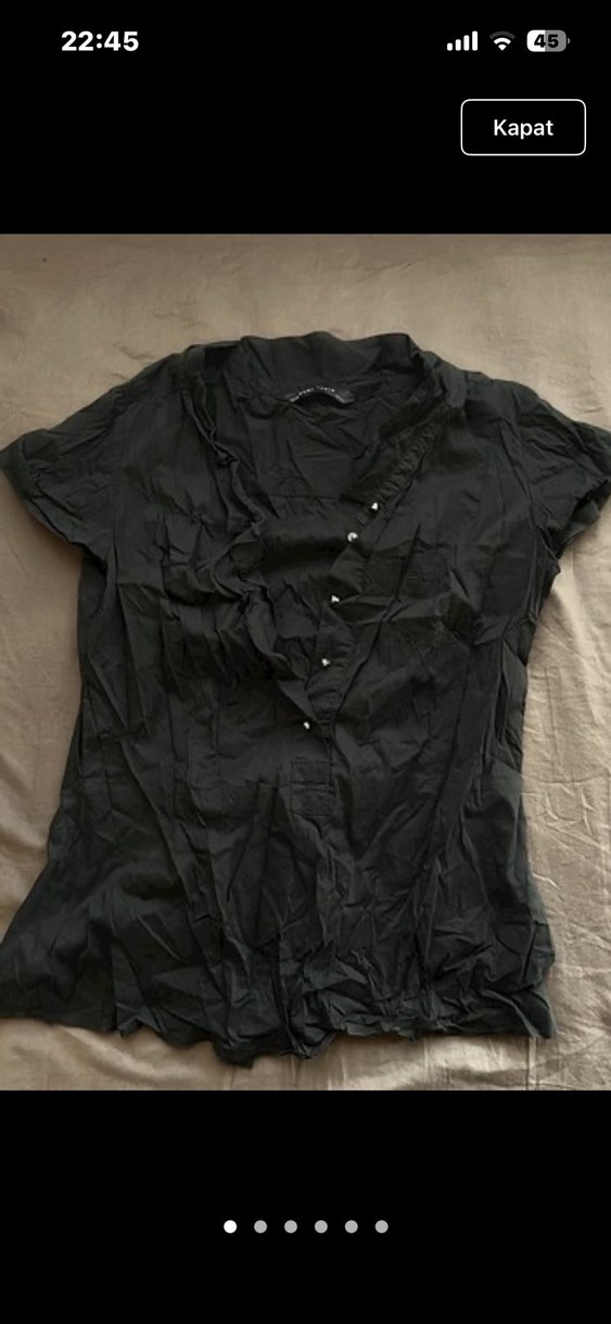 Düğmeli Siyah Kısa Kollu Kadın Gömlek