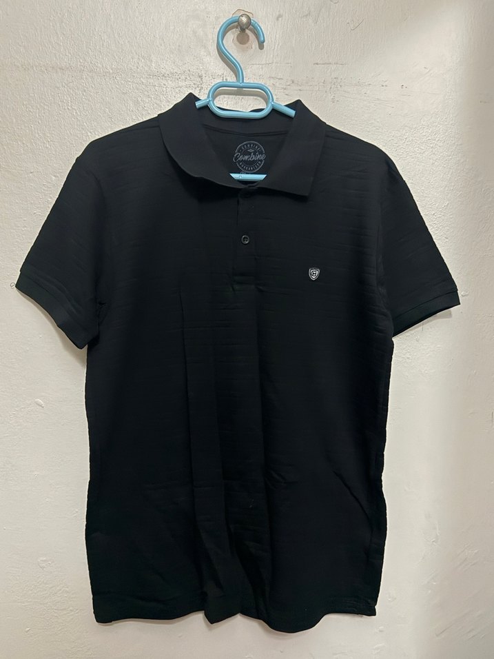 Düğmeli önü ve yakalı kısa kollu, siyah ve dar kesim polo tişört. Pürüzsüz sentetik kumaştan üretilmiştir. Günlük rahat sokak stili için uygundur.