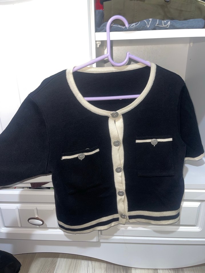 Düğmeli Siyah Kısa Kollu Triko Hırka