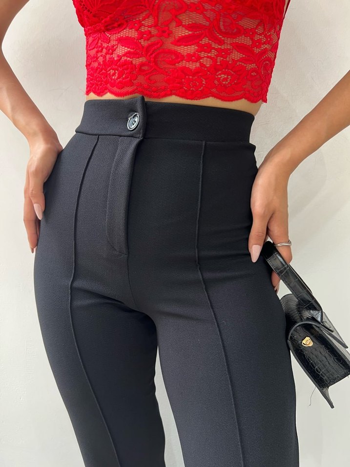 Yüksek Bel Toparlayıcı Likralı İspanyol Paça Palazzo Pantolon