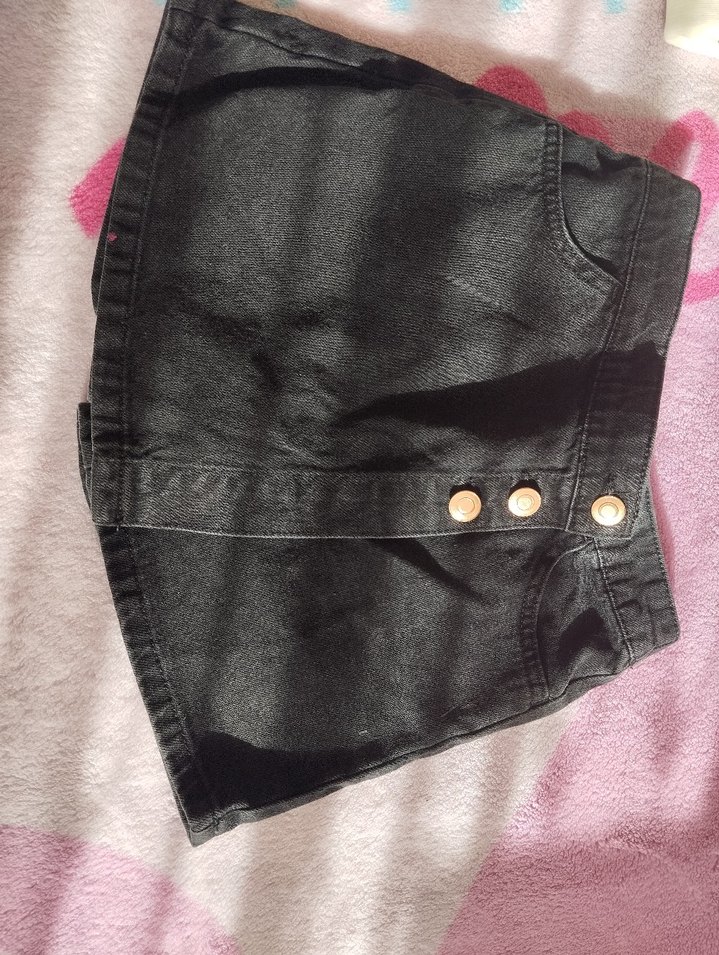 Düğmeli Siyah Kız Çocuk Denim Etek