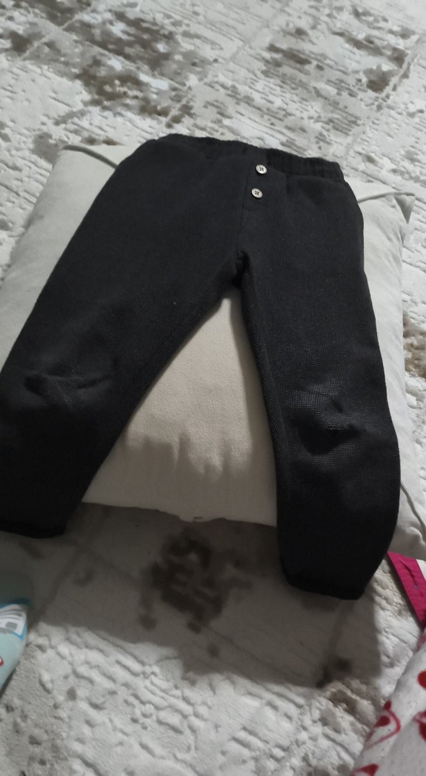 Düğmeli, siyah kız taytı, yumuşak ve sıcak kumaştan yapılmıştır. Sade ve normcore tarzda, rahat bir üründür.