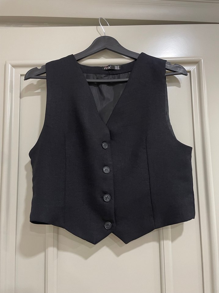 Düğmeli Siyah Klasik Kesim Kadın Yelek