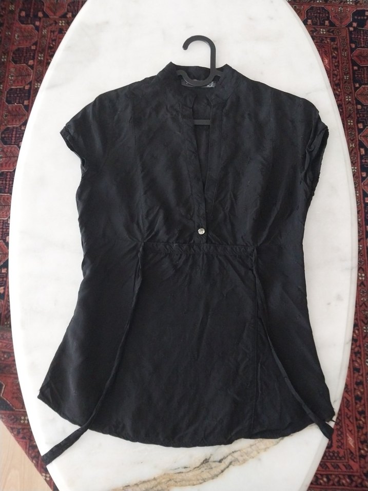 Düğmeli Siyah Kolsuz Keten Bluz