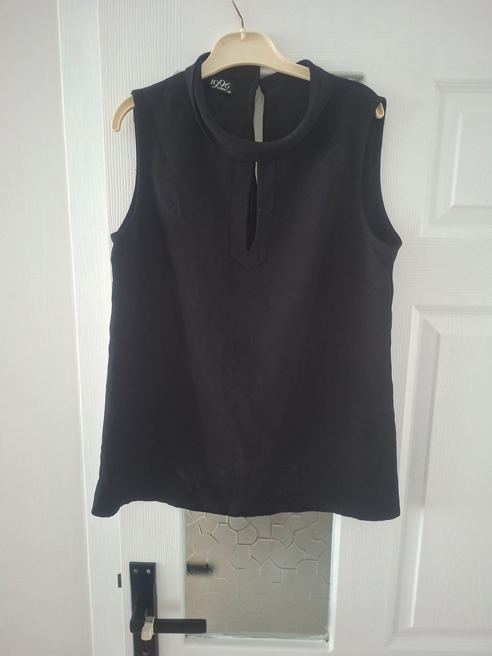 Siyah kolsuz keten bluz, yuvarlak yaka ve önünde düğmeli detay içerir. Hafif keten kumaştan yapılmış, günlük kullanıma uygun bol kesimdir.yenı gıbı sadece yıkanıp utukenecek