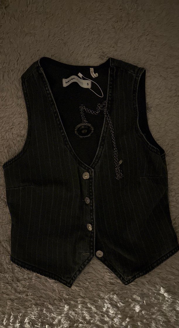 Düğmeli Siyah Kot Gotik Yelek (GIYILMEDI!)