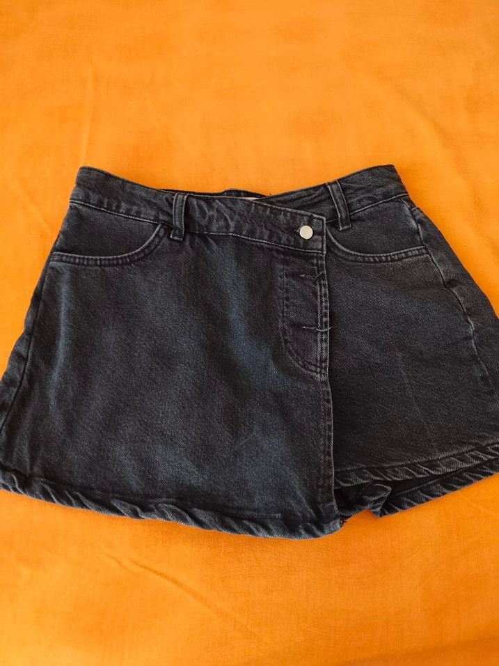 Düğmeli, siyah kot mini etek, rahat kesimi ve düğme detaylarıyla günlük rahat sokak stili için uygundur. bir defa yikandi