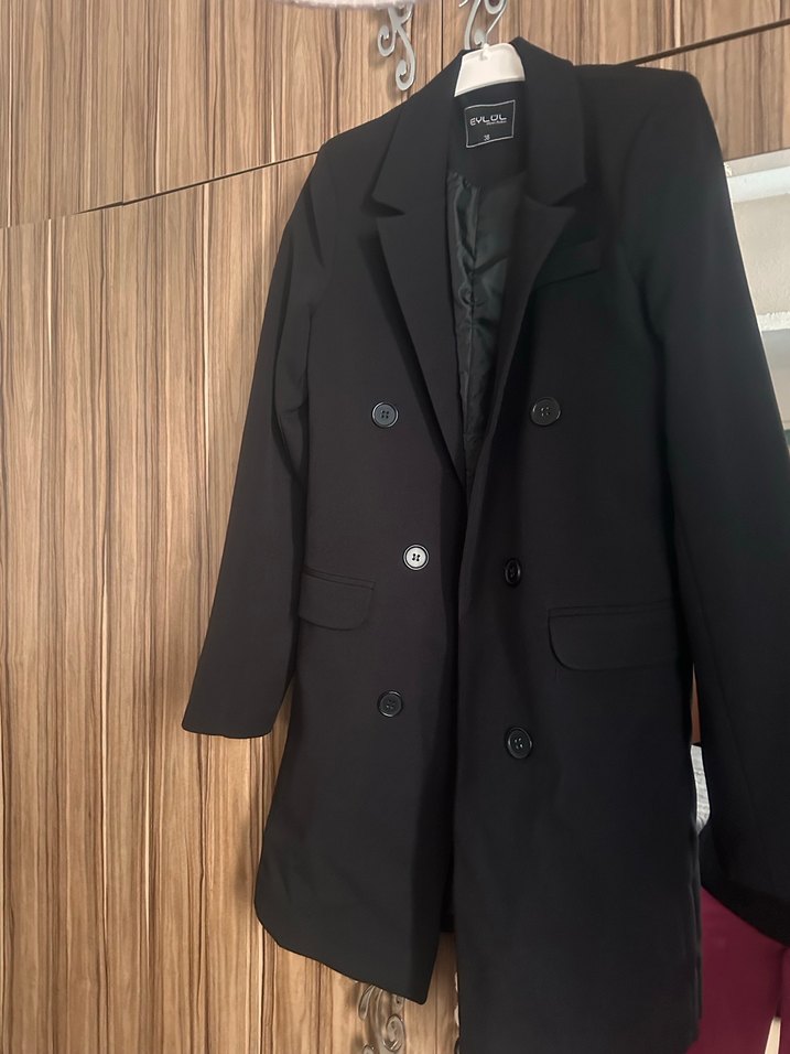 Düğmeli Siyah Maxi Kadın Blazer Ceket