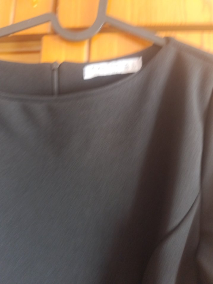 Düğmeli, yuvarlak yakalı siyah midi elbise, uzun kolludur. Normal kesim ve desen içermeyen minimalist tasarıma sahiptir.