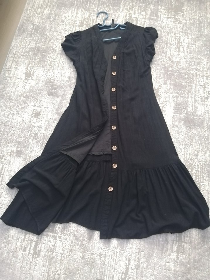 Düğmeli Siyah midi Elbise