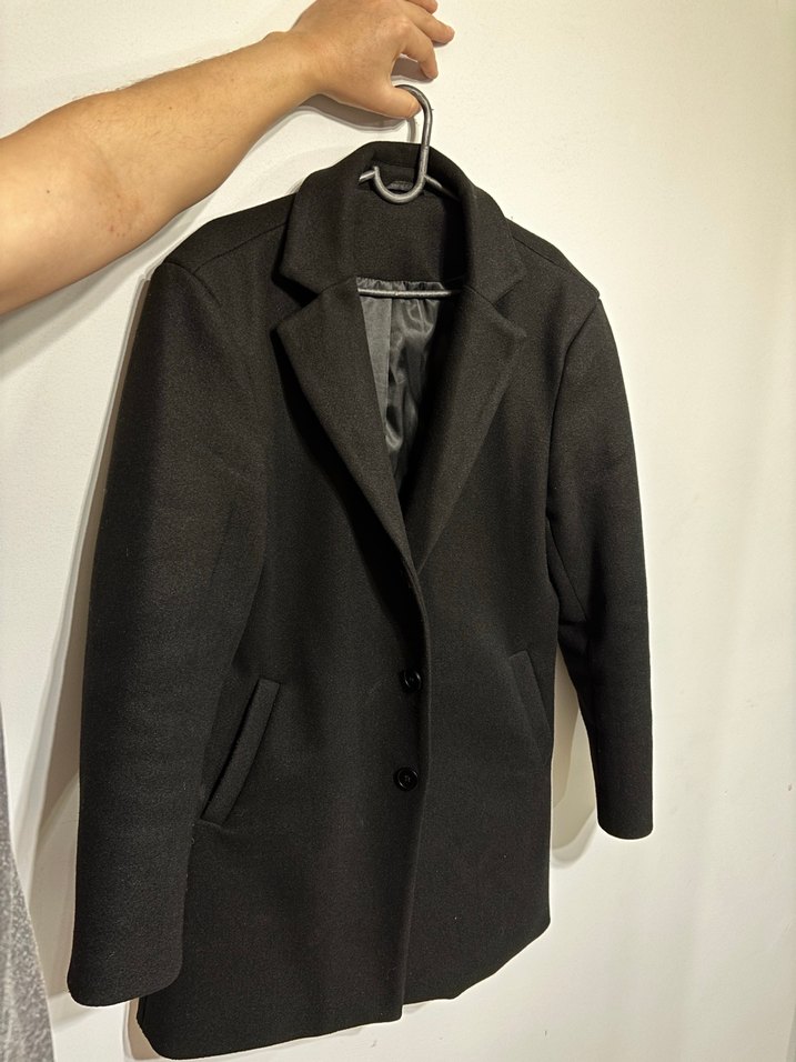 Düğmeli ve klasik yaka detaylı, yumuşak ve sıcak kumaştan yapılmış siyah midi uzunlukta erkek kaban. Ofis ve günlük kullanım için uygun, sade tasarımlı.