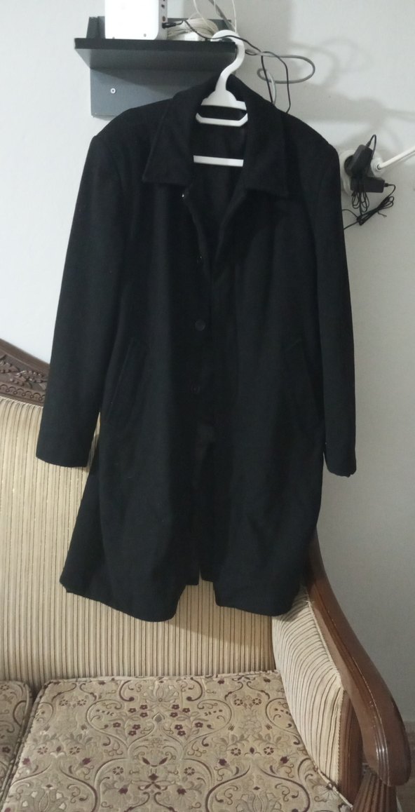Düğmeli, siyah midi kaban, uzun kollu ve geniş kesim.cepleri yırtık fotoğraflarda belirtildi içten sağ koltuk altında sökük var kusurlar fotoğraflarda belirtildi