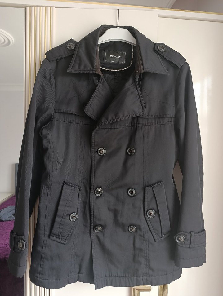 Düğmeli Siyah Midi erkek Trençkot