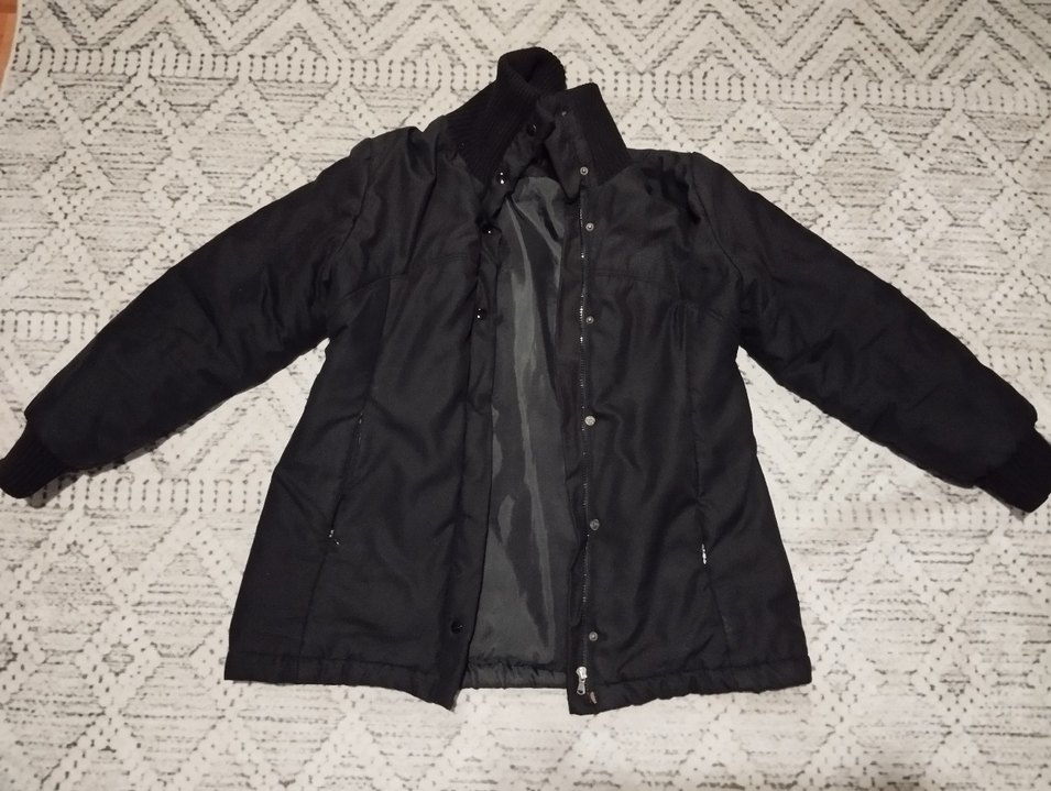 Düğmeli, notched lapel yakalı siyah mont. Uzun kollu, midi boyda ve rahat kesimdir. Günlük kullanıma uygun yumuşak sentetik kumaştan üretilmiştir. Giymeden önce mutlaka yıkayınız.