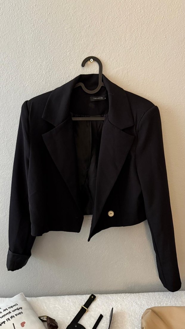 Düğmeli, siyah midi kadın blazer. Notch yaka, uzun kollu ve regular fit. Ofis kullanımı için uygun, ipeksi kumaştan yapılmıştır. xs-s bedene de uygun olur