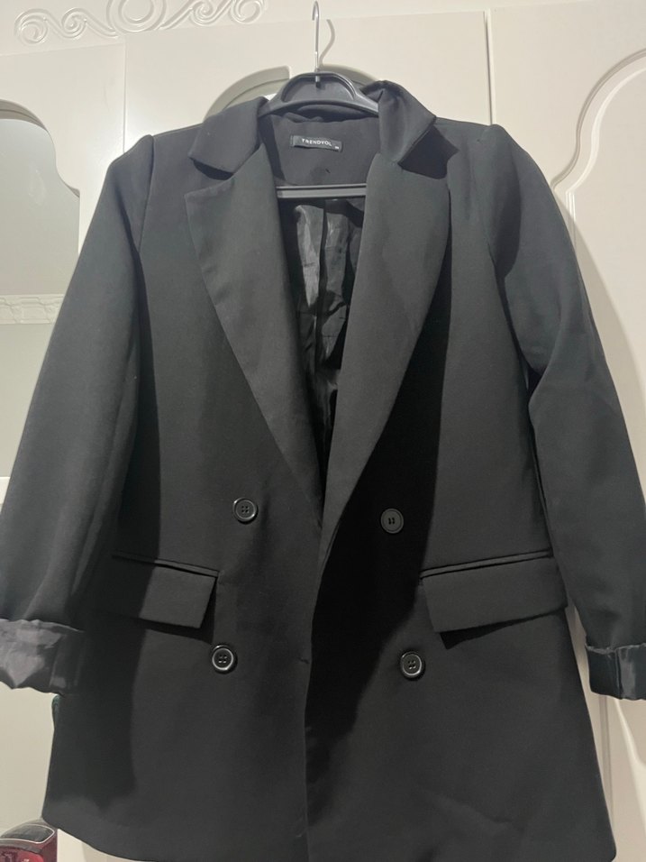 Düğmeli Siyah Midi Kadın Blazer Ceket