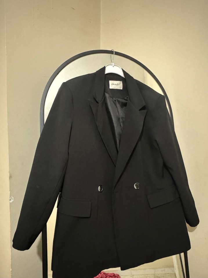 Düğmeli Siyah Midi Kadın Blazer Ceket