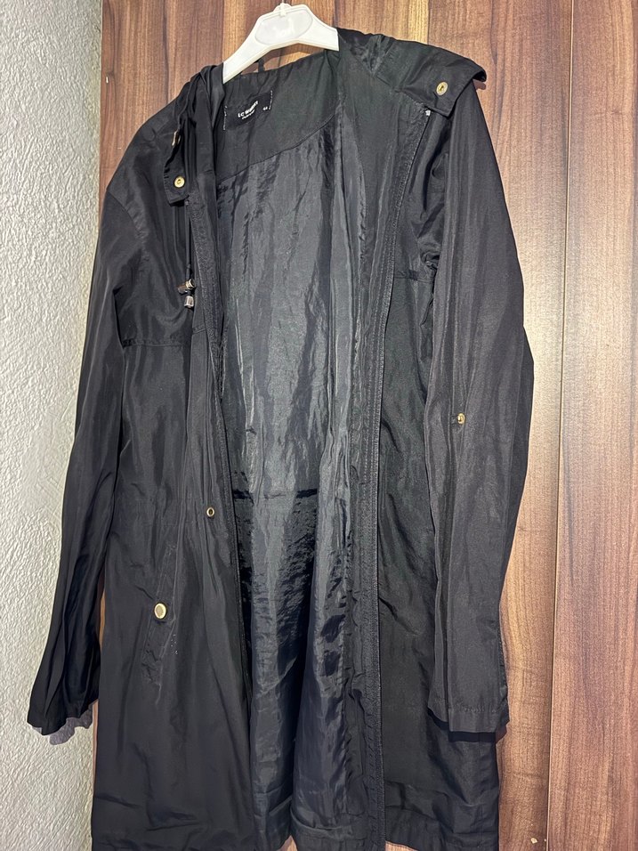 Düğmeli, siyah midi ceket, notched yaka ve uzun kollu tasarıma sahiptir. Sentetik kumaştan üretilmiş, rahat ve salaş kesimdir.
