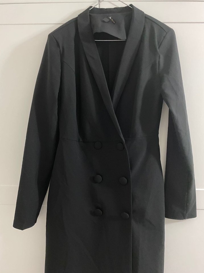 Düğmeli Siyah Midi Kadın Ceket tarzı elbise