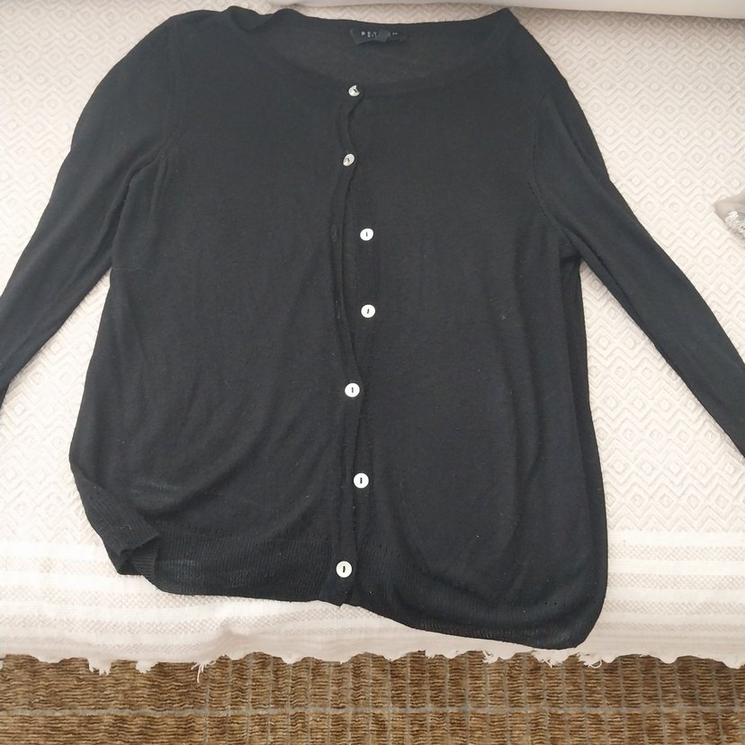Pamuk kumaştan yapılmış, düğmeli siyah midi hırka, yuvarlak yaka ve uzun kolludur. Rahat kesimi ve minimalist gotik tarzıyla günlük kullanıma uygundur.