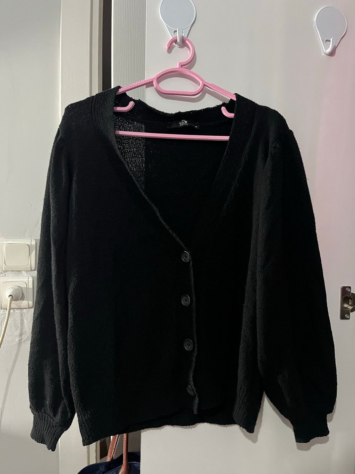 Düğmeli, V yakalı, uzun kollu ve bol kesim siyah triko hırka. Midi boyda, rahat ve gündelik kullanıma uygun goth tarzı.