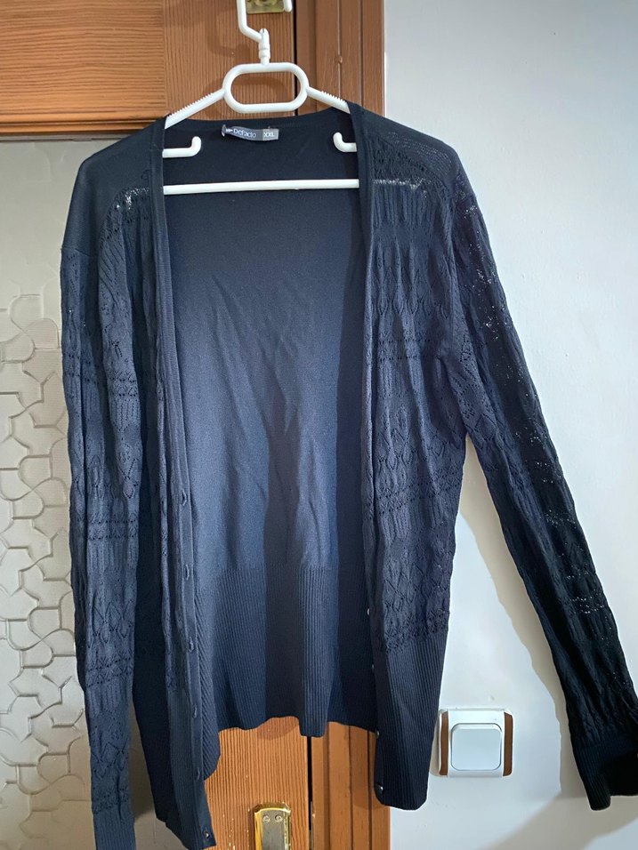 Düğmeli Siyah Midi Kadın Hırka
