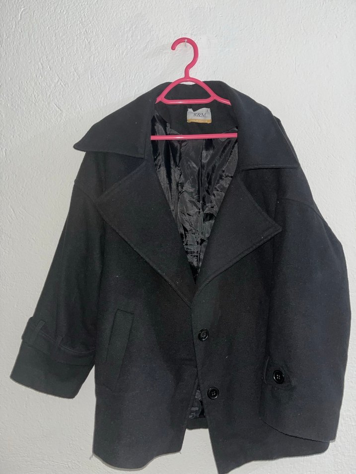 Düğmeli, siyah midi kaban, sivri yaka ve uzun kollu. Yumuşak ve sıcak kumaştan, günlük kullanıma uygun.