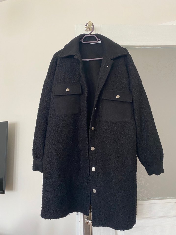 Siyah midi uzunlukta, düğmeli ve yakalı bu kaban, yumuşak ve sıcak kumaştan üretilmiştir. Salaş kesimi ve uzun kollarıyla rahat ve günlük kullanıma uygundur.