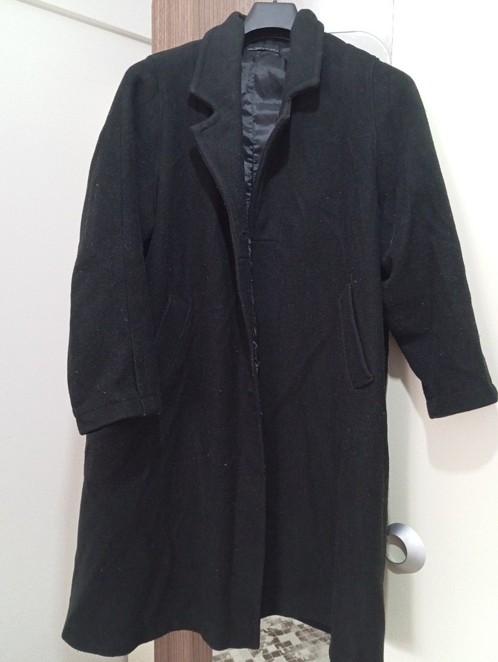 Düğmeli, siyah midi uzunlukta kadın kabanı. Notlu yaka ve uzun kollu, rahat kesimiyle iş ortamına uygundur. Yumuşak kumaştan üretilmiştir.