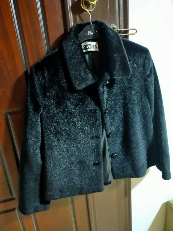 Düğmeli ön ve kesik yaka detaylı siyah midi uzunlukta kadın kaban. Uzun kollu, düzenli kesim ve sıcak dokulu kumaştan ofis kullanımı için uygundur.