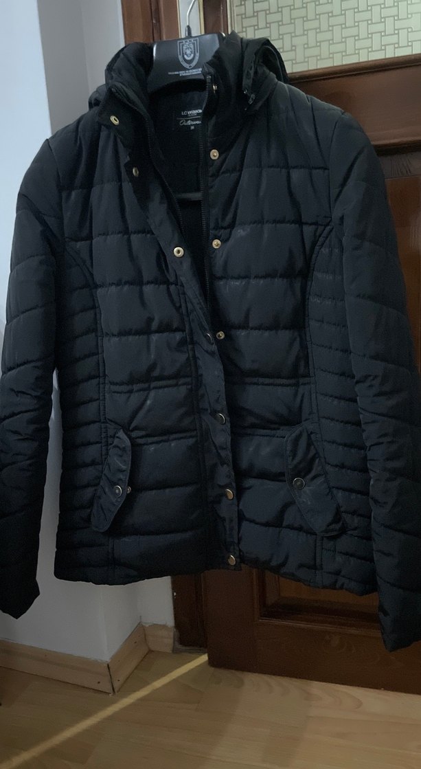 Düğmeli, siyah renkli, midi boy, notched lapel yakalı, uzun kollu, sentetik kumaştan üretilmiş, genç ve rahat kesimli kadın kışlık cekettir.