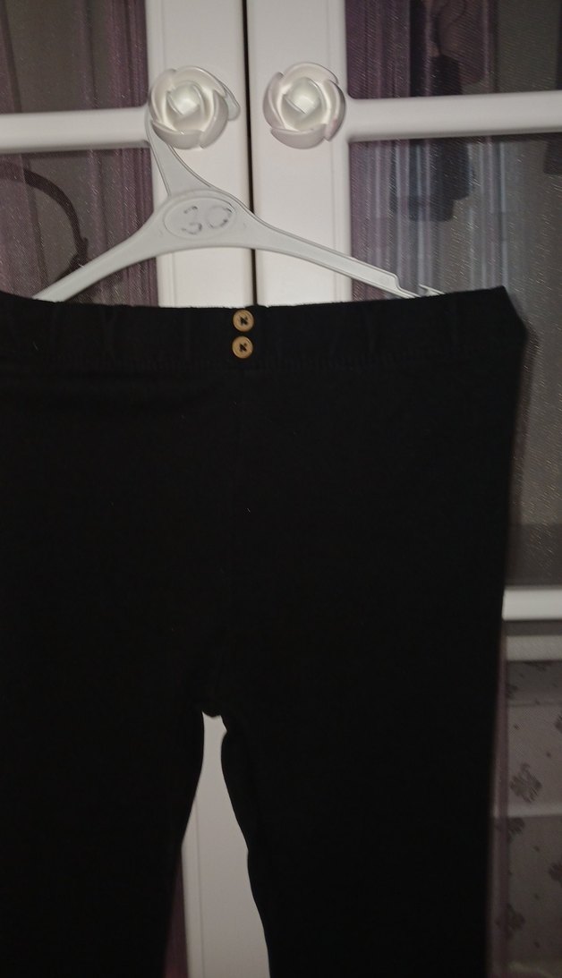 Düğmeli, siyah midi uzunlukta, sentetik kumaştan yapılmış dar kesim kadın pantolon. Gotik tarzda günlük kullanıma uygundur.