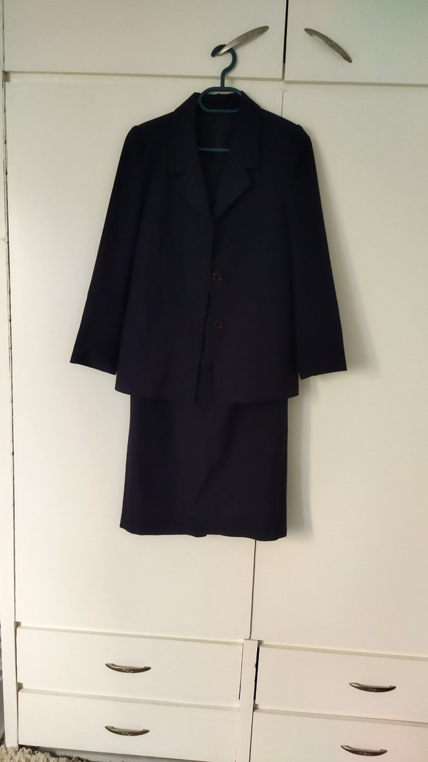 Düğmeli Siyah Midi Kadın Takım Elbise