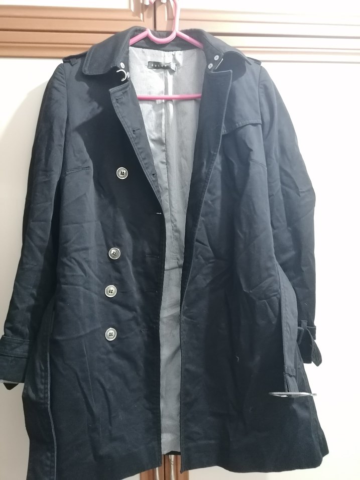 Düğmeli siyah midi trençkot, klasik yakalı ve uzun kolludur. Sentetik kumaştan, günlük kullanıma uygun, rahat ve düzenli kesimlidir.