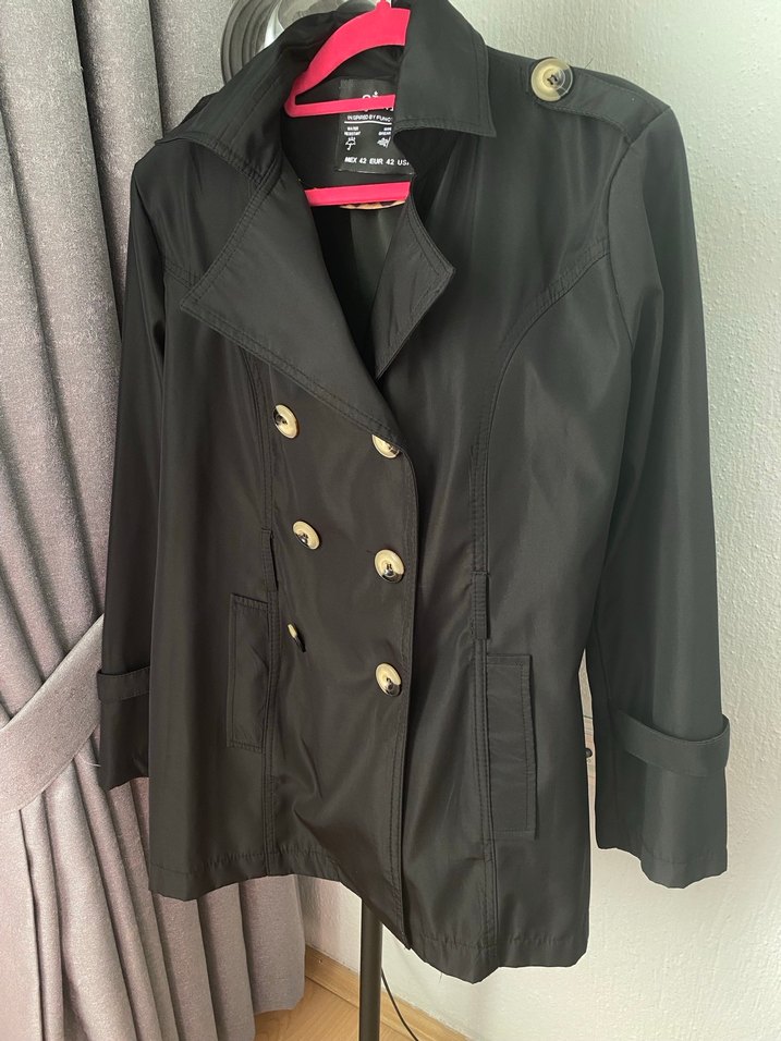 Düğmeli, uzun kollu siyah midi trençkot, yakası kesik ve vücuda oturan kesimiyle ofis için uygun, şık ve rahat bir parça. İade kabul etmiyorum