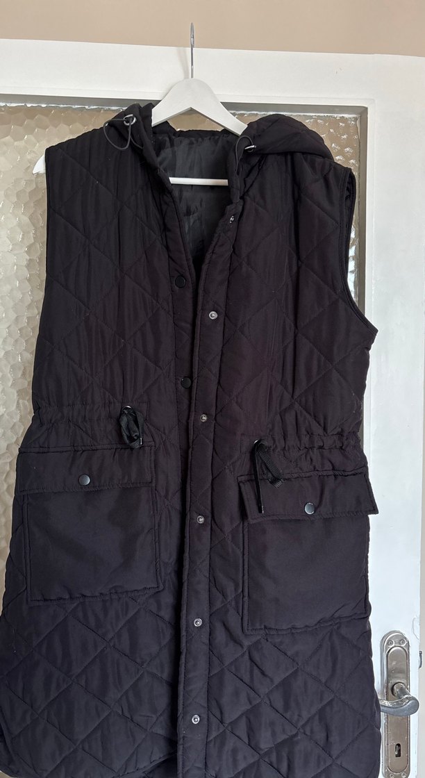 Düğmeli, yakalı siyah midi yelek. Rahat kesim, büyük ön cepler ve yumuşak, sıcak kumaştan üretilmiştir. Günlük sokak stili için uygundur. İç kısmı biraz kendini attığı için astar diktirdim astarlı gönderim sağlanacak .. M ve l bedene uygundur kalıbı rahat