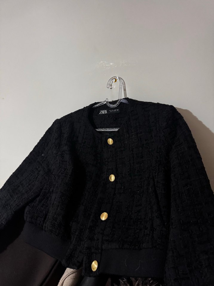 Düğmeli, uzun kollu, siyah keten kadın ceket. Salaş kesimli, midi boyda ve yakası kesik detaylıdır. Günlük kullanıma uygundur.