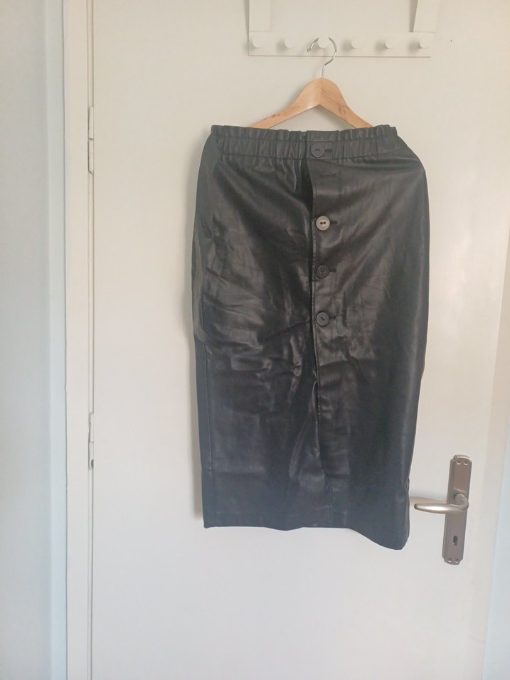 bel kismj lastkli. on tarafindan 5 adet dugme var. dugmeler acilarak yirtmac dekoltesi arttirilabiliyor. boyum 1.75, etek boy 80 cm bel genislik (lastik tam acildiginda 46 cm) #etek #zara #zaraetek #sunideri
