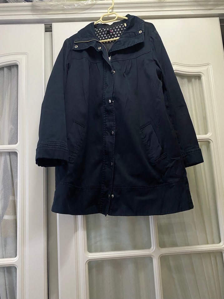 Düğmeli, siyah midi uzunlukta trençkot lapel yaka ve uzun kollu, bol kesim tasarımıyla günlük kullanıma uygun.cok az kullanıldı herhangı bır deforması yoktur