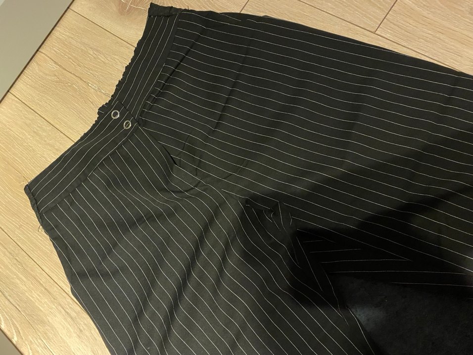 Düğmeli detaylı, siyah midi boy kumaş pantolon. Ofis ve sokak stiline uygun, düzenli kesim.