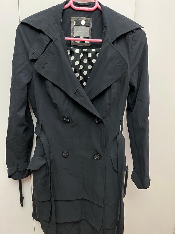 Düğmeli, siyah midi trençkot, sentetik kumaştan, uzun kollu ve dar kesim. Notch yaka detaylı, günlük kullanıma uygun şık bir parça.
