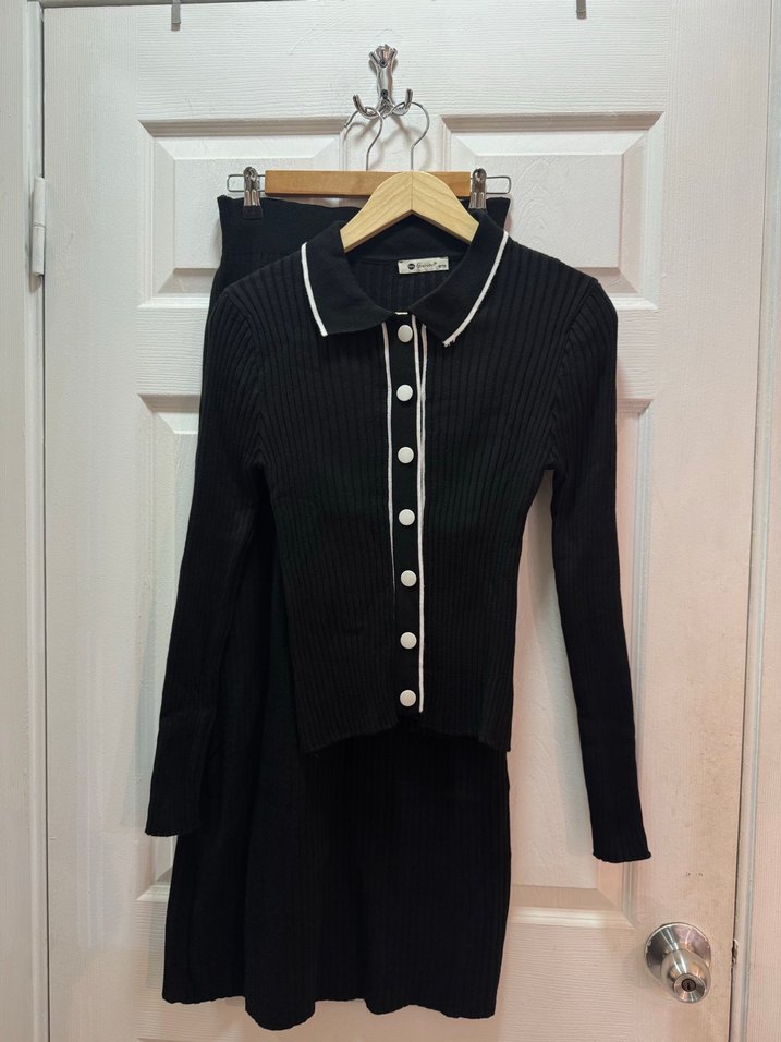 Düğmeli Siyah Midi Triko Kadın etekli hırkalı takım