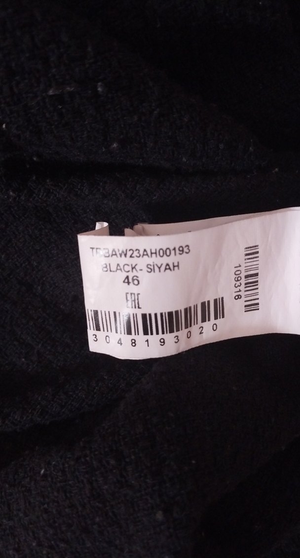 Düğmeli, V yaka, siyah midi boy kadın jile. Sentetik kumaştan, iki ön cepli ve düzenli kesimlidir. Avant-garde, Paris tarzı goth stilini yansıtır. omuzdan boy 92 cm