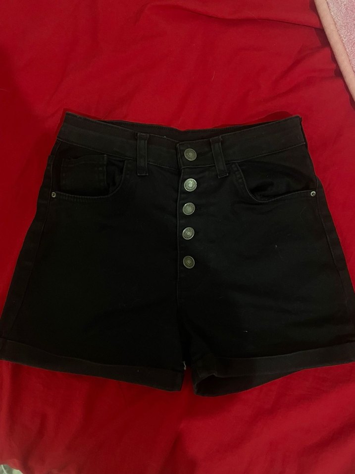 Düğmeli Siyah Mini Denim Şort