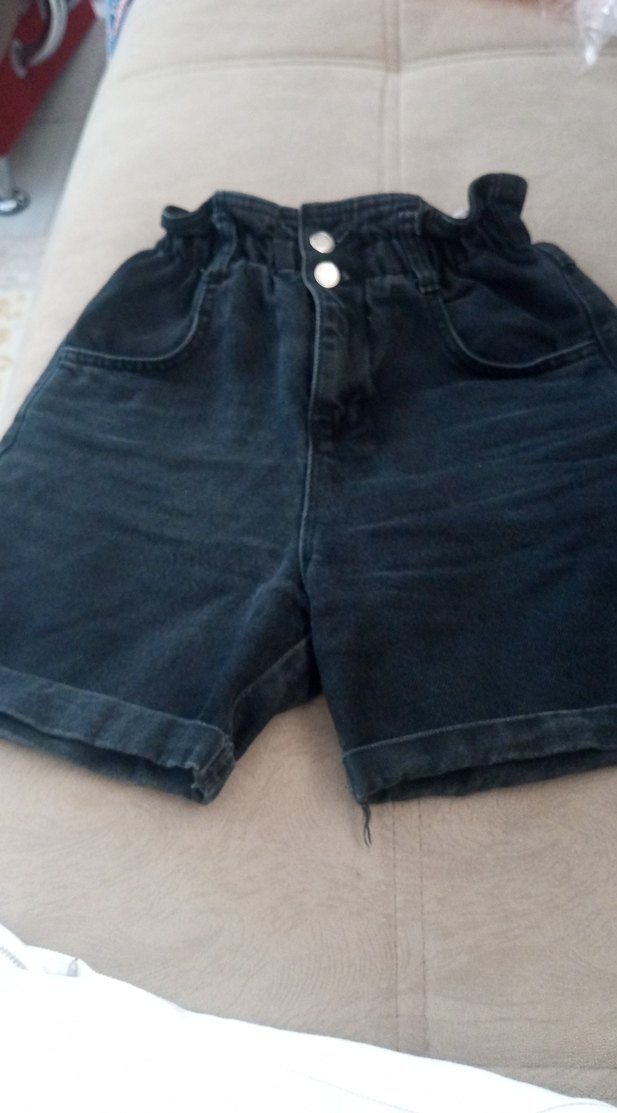 Düğmeli Siyah Mini Denim Şort