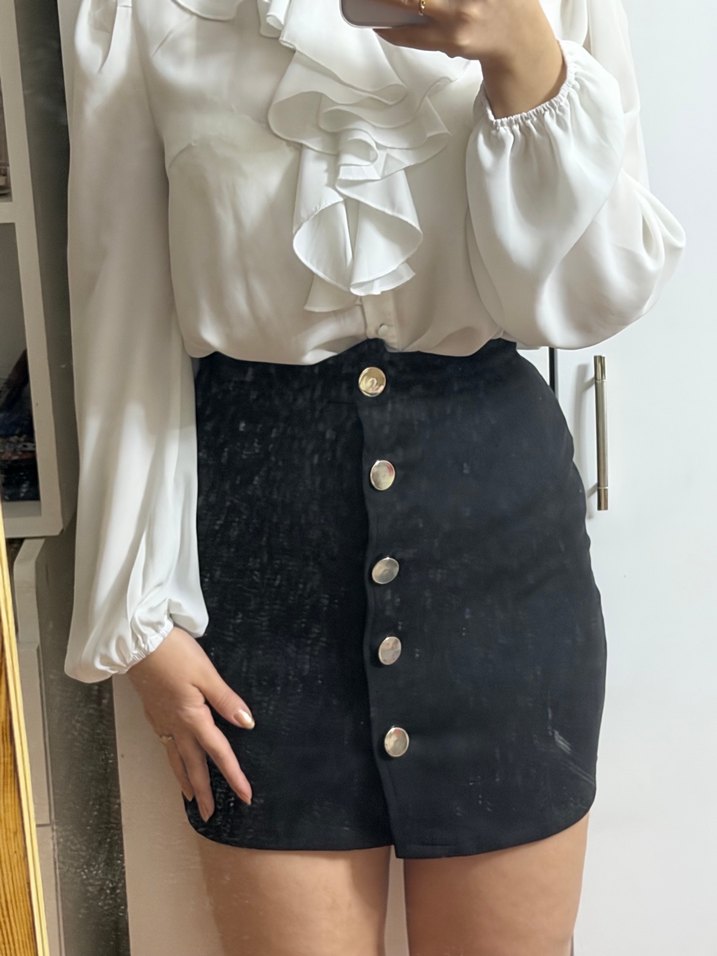 Düğmeli Siyah Mini Etek
